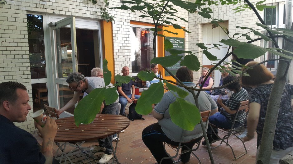 Nun haben wir unsere ersten Workshoptage erlebt und können sagen, dass sich wirklich sehr verschiedene Menschen zusammengefunden haben, um an dem Projekt teilzunehmen. Es war wunderbar zu sehen und zu spüren, wie offen alle Teilnehmer*innen gegenüber den anderen sind und den Wunsch zeigen sich trotz der manchmal offensichlichen, manchmal auch verborgen, Hürden ins Gepräch zu kommen und etwas über die Welt des anderen zu erfahren. So entstand gerade am dritten Workshoptag, 26.07.2019, ein reger Austausch über die Frage, was eigentlich „Zurück ins Leben!“ bedeutet und wie dies sich vor dem persönlichen Hintergrund ganz individuell definiert. Inhaltlich konnten die Teilnehmer*innen viel über die Geschichte der Brotfabrik erfahren und dies sogleich mit einer Erkundung ebendieser Räume verbinden (24.07.2019). Ergänzend dazu gab es am zweiten Tag, dem Tag des Kulturmanagements, viele gute Tipps von Herrn Jörg Fügmann, einem der Geschäftsführer der Brotfabrik, für die Organisation des im Mai des kommenden Jahres stattfindenden Hausfestes. Dabei kamen bereits viele schöne Ideen seitens der hoch motivierten Teilnehmer*innen auf, die sogar weit über die Grenzen des Projekts hinausreichen werden. Wir sind gespannt! Natürlich wurden diese Tage auch dazu genutzt um Fragen zu dem kommenden Workshops zu klären und Termine für persönliche Einzelcoachings mit unserem Berliner Jobchoach Frau Luise Finck von der Trias gGmbH auszumachen. Vor allem letzteres fand regen Anklang. In jedem Fall waren es sehr spannende und intensive drei Tage und wir freuen uns alle beim nächsten Treffen, zum Thema „Wandmosaik“ zusammen loslegen zu können!