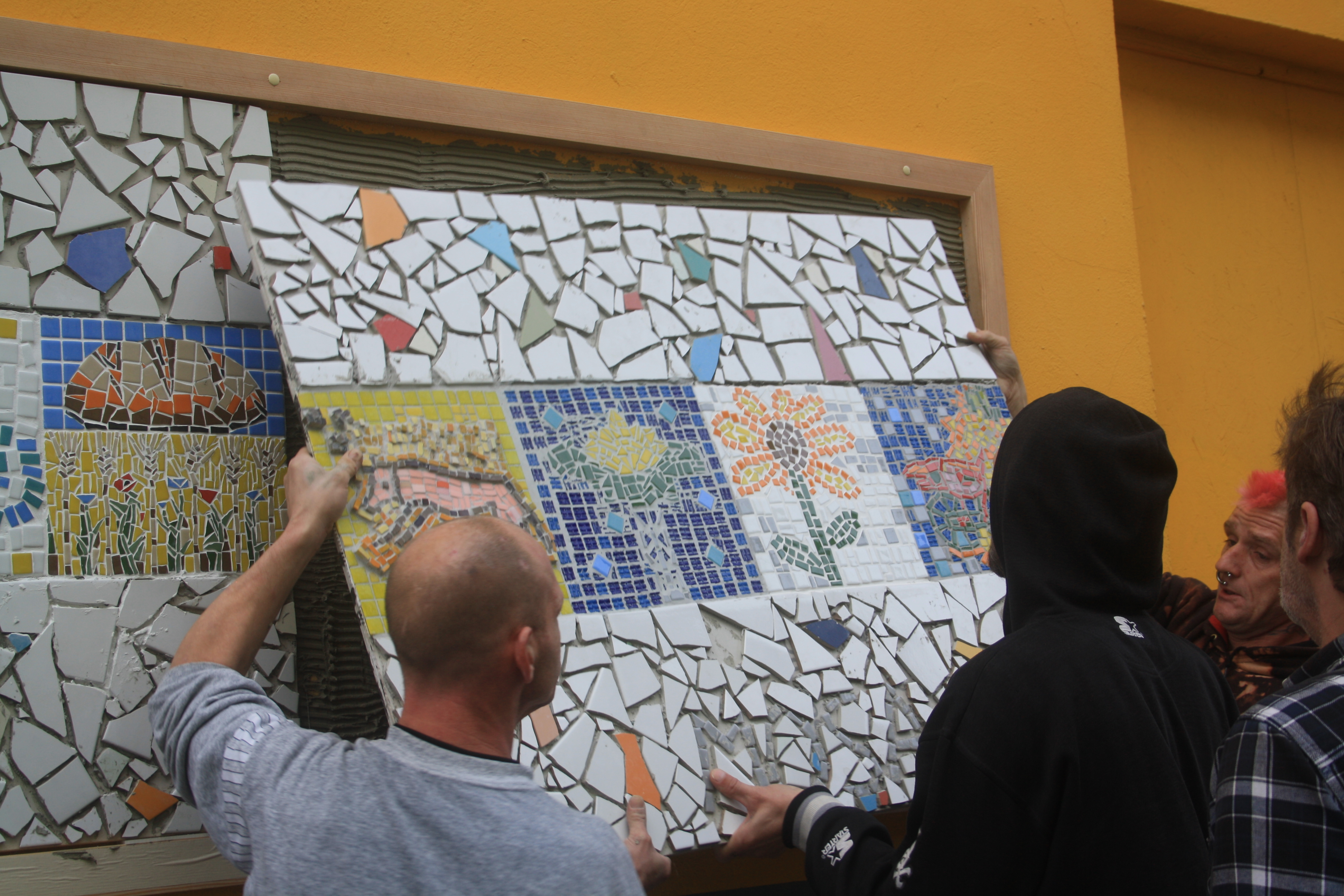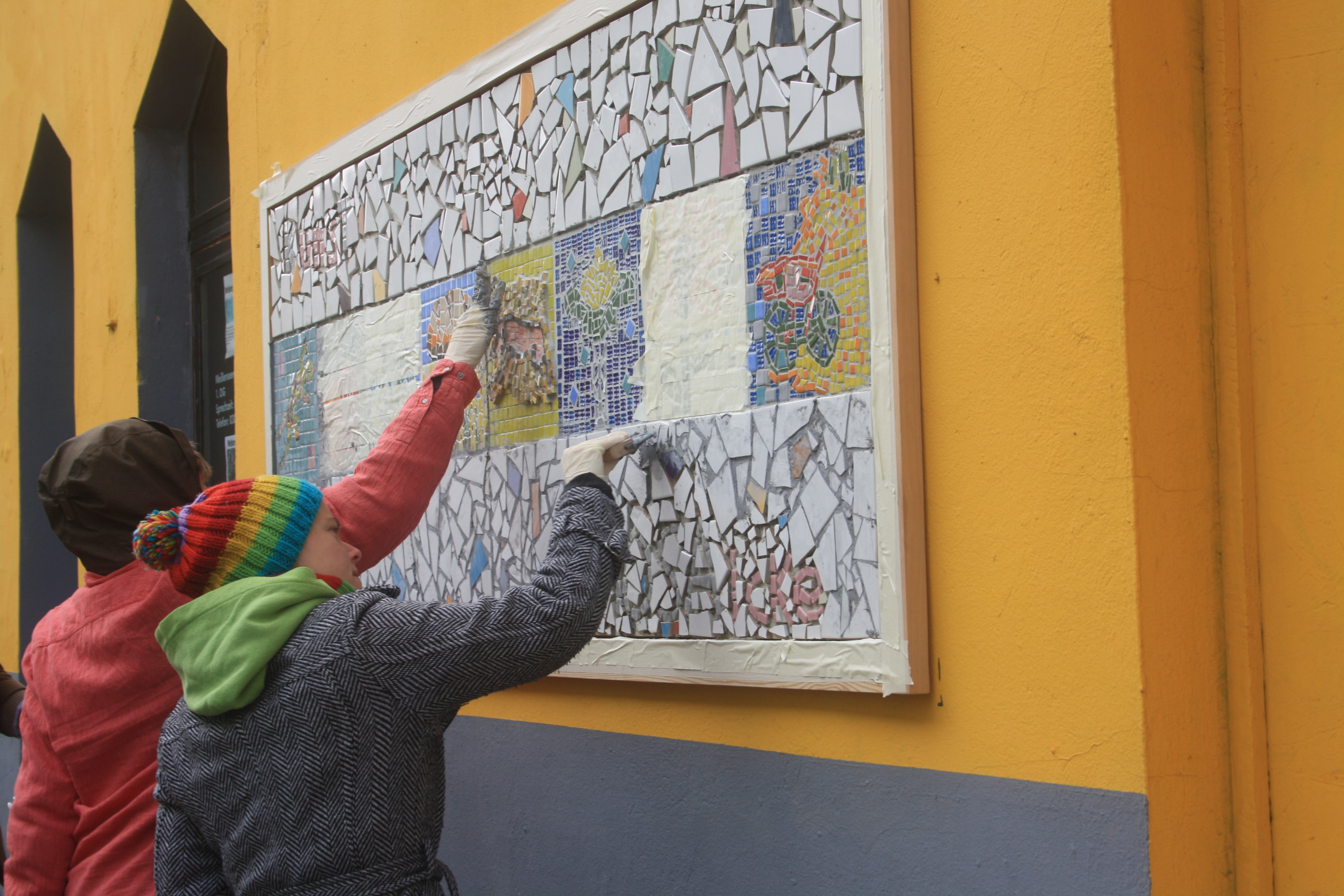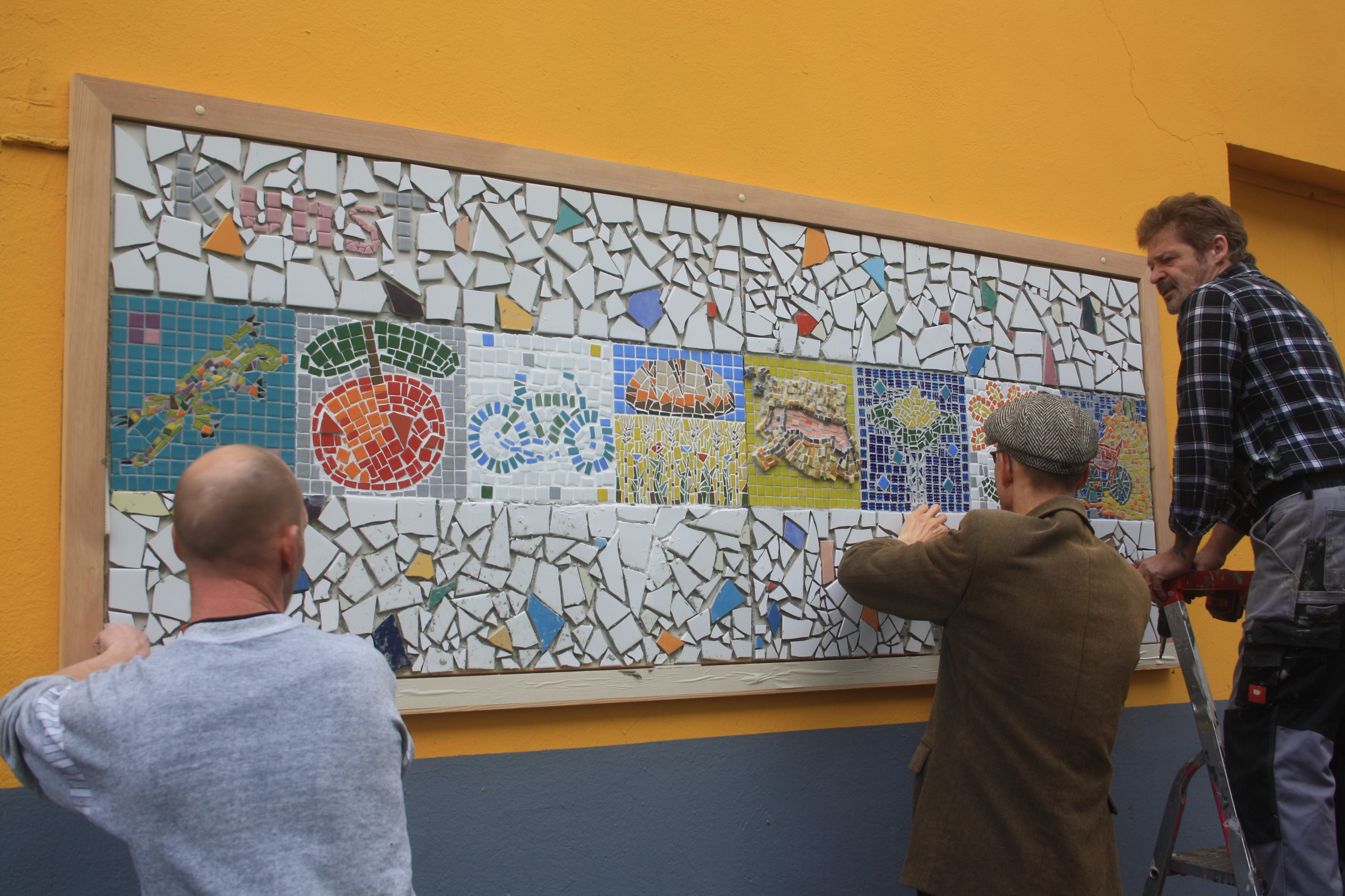 Wir sind glücklich, dass so viele Freunde und Besucher da waren und mit uns feierten! Und wir hoffen, dass in Zukunft jeder, der an unserem Werk vorbeigeht, etwas von unserer Freude spürt, die wir beim werkeln und formen des Mosaiks hatten.