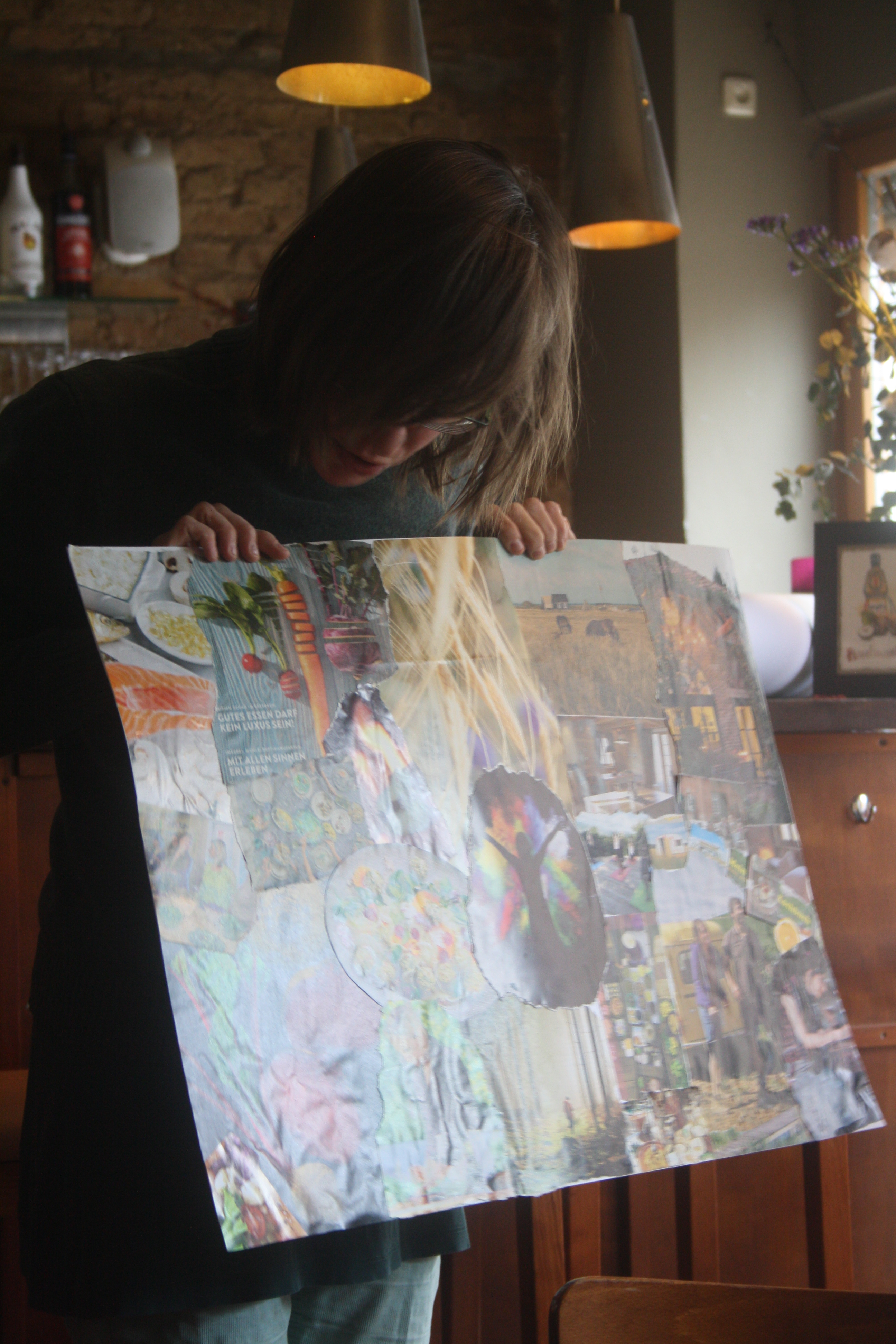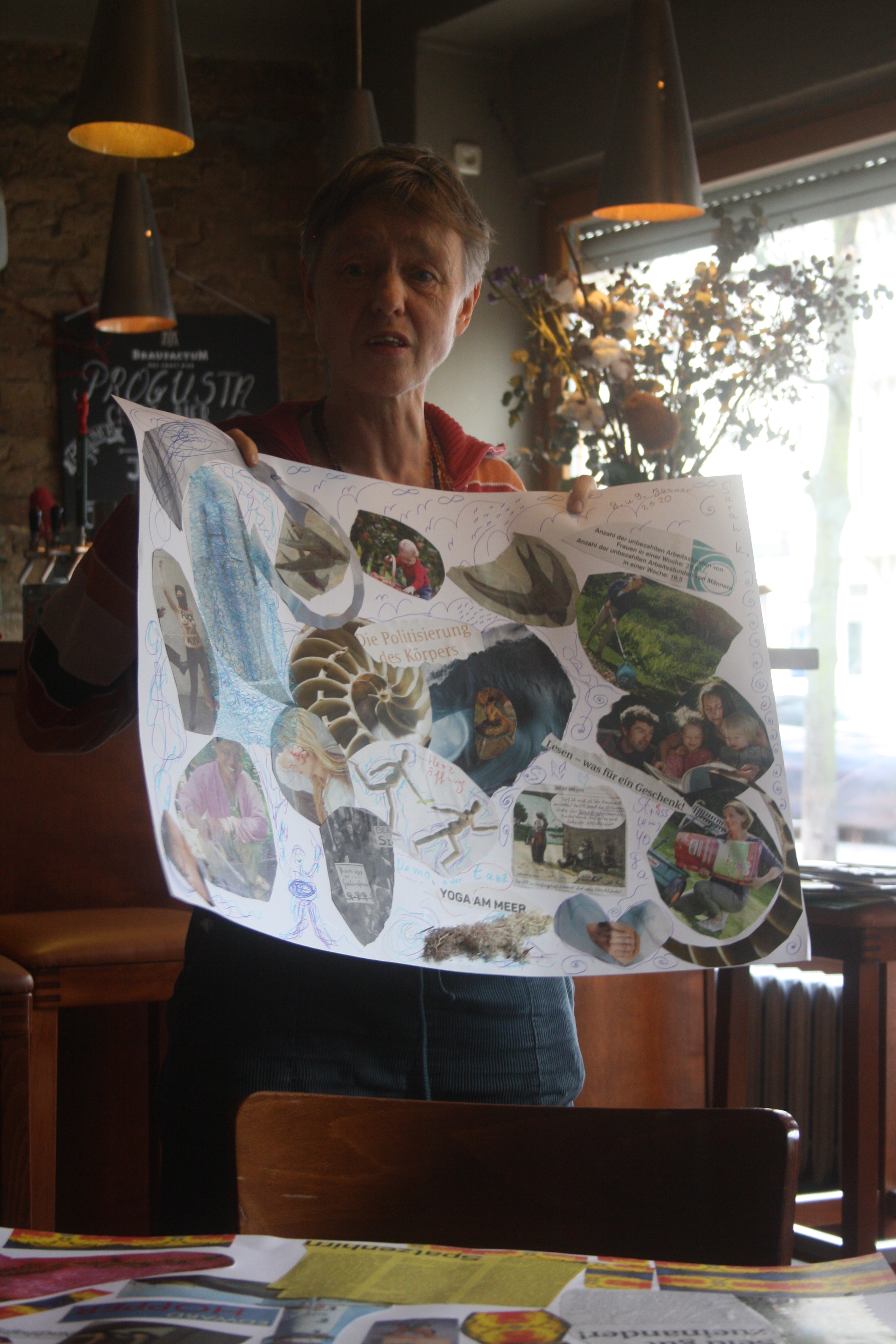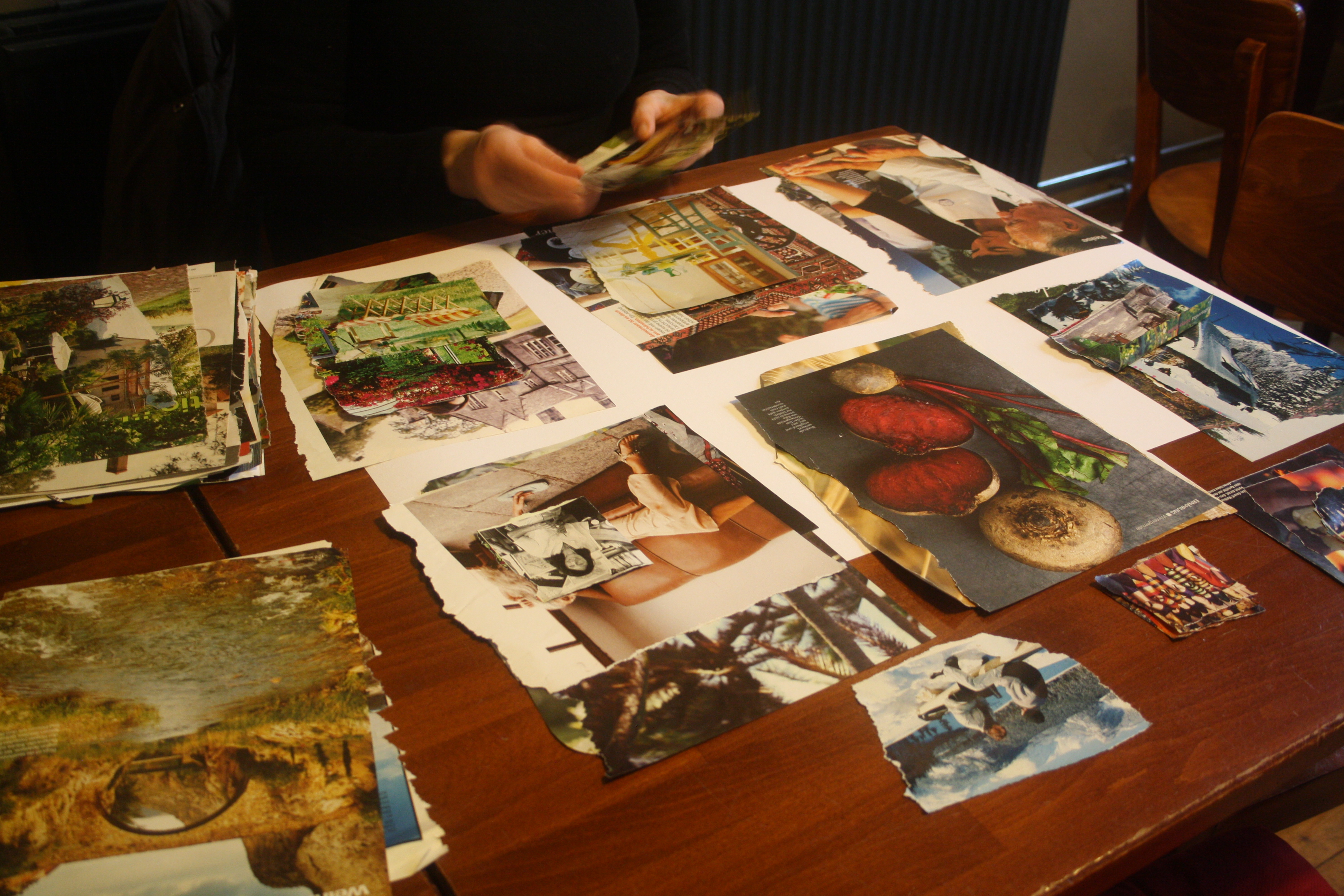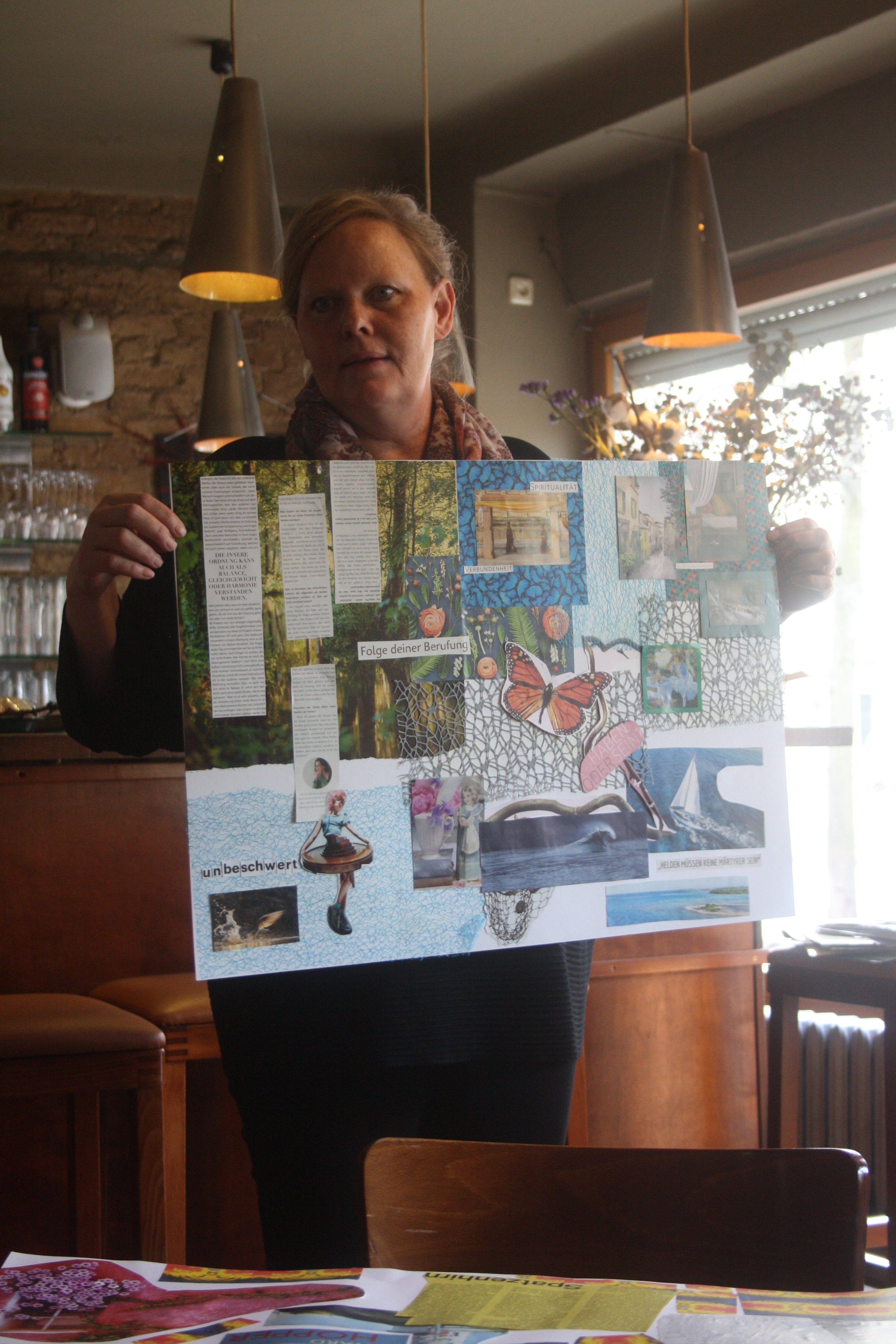Dann kam die Kreativität ins Spiel! Denn diese Gedanken und Ideen sollten anschließend in ein Visionboard fließen, welches jeder Teilnehmer oder Teilnehmerin mit nach Hause nehmen und dort als Gedankenstütze nutzen kann. Eifrig wurde im Material gebuddelt, ausgeschnitten und arrangiert und so begannen sich wunderbare Collagen zu entwickeln, in denen man sich als Betrachter geradzu verlieren kann. Aufgrund der Arbeitsfreude und Detailgenauigkeit wurden wir zwar nicht am zweiten Tag fertig, aber es wurde einfach kurzerhand ein dritter Tag ausgemacht (15.01.2020), um die Werke in Ruhe fertig zu stellen. Denn in der Ruhe liegt die Kraft!