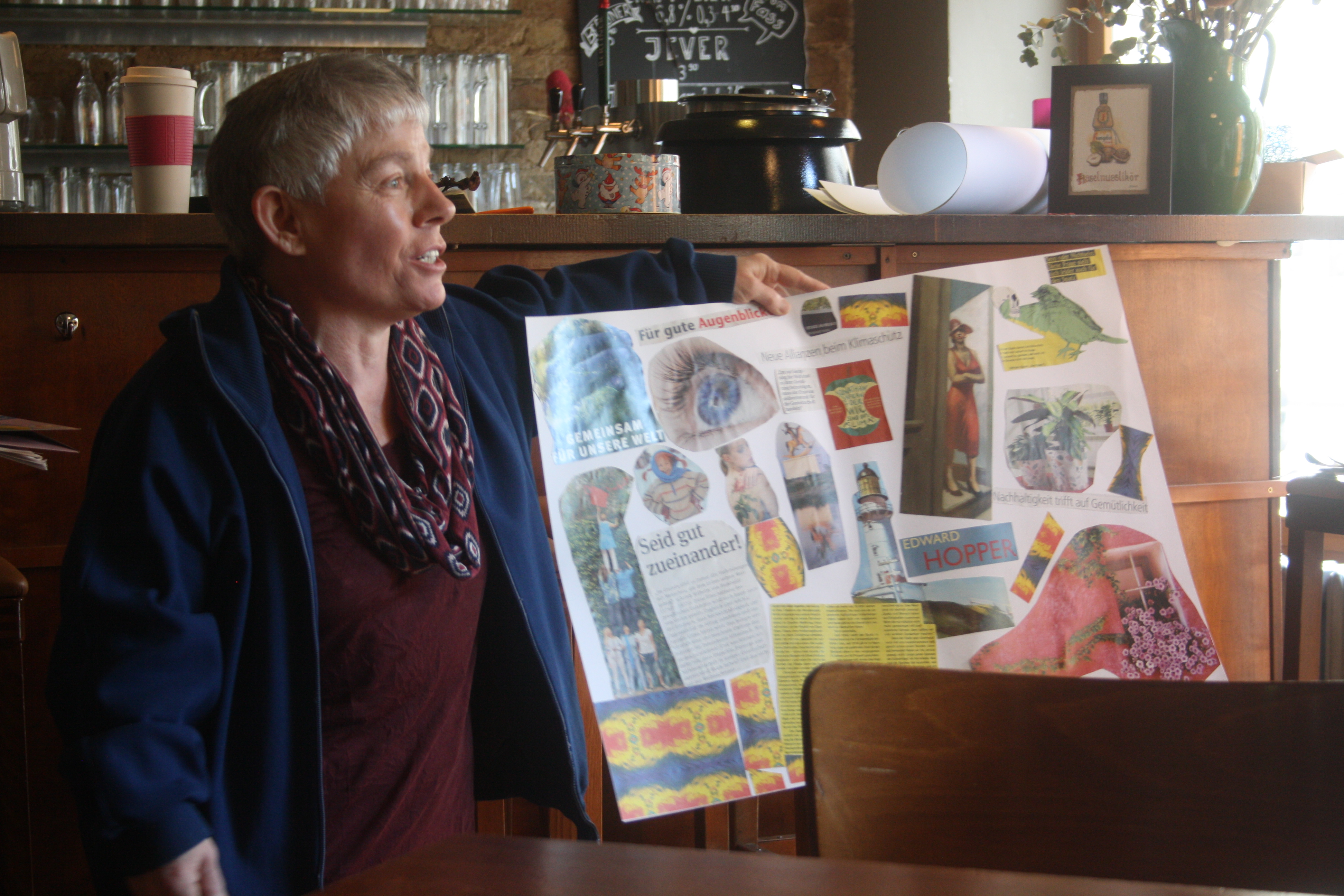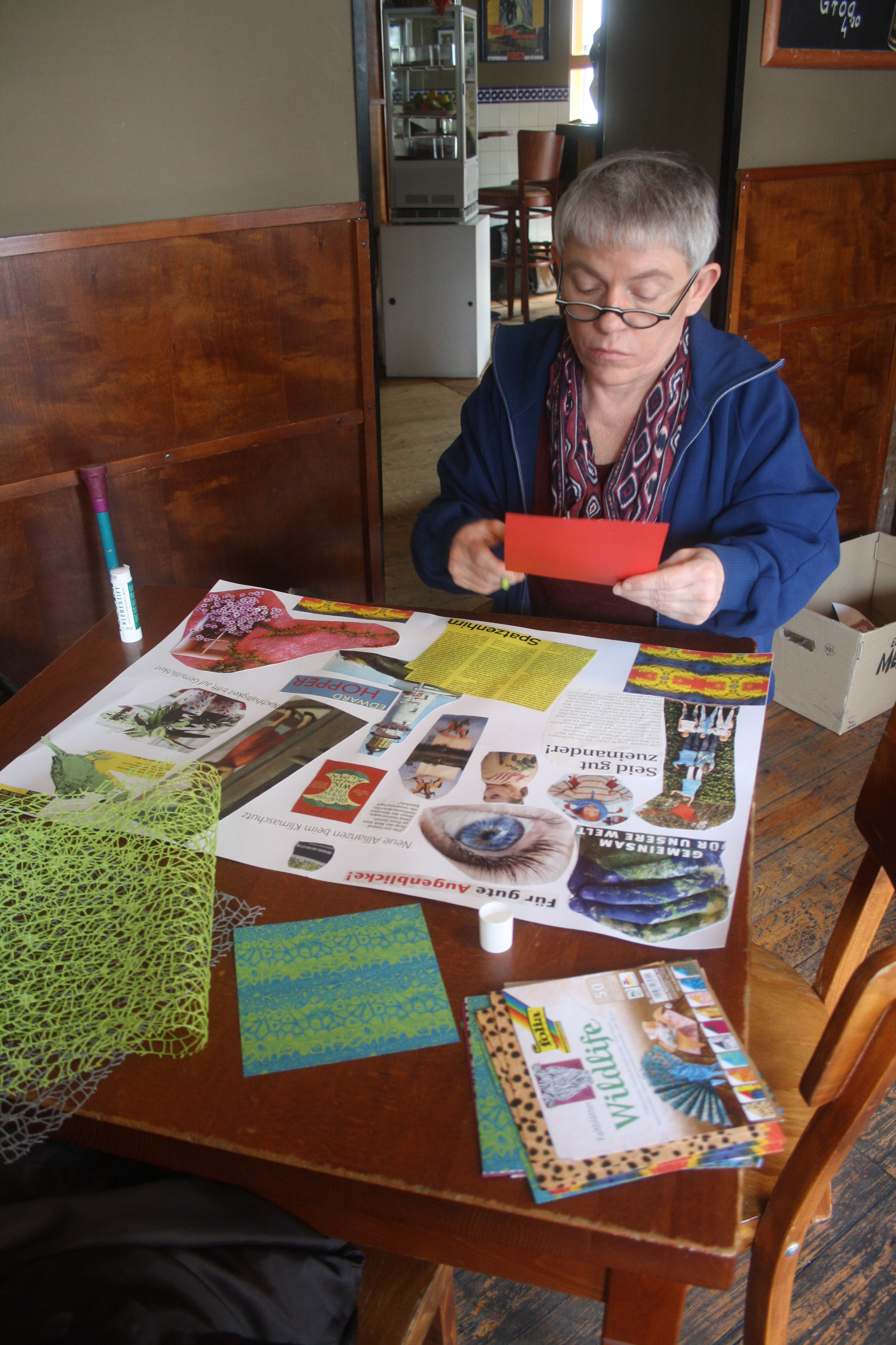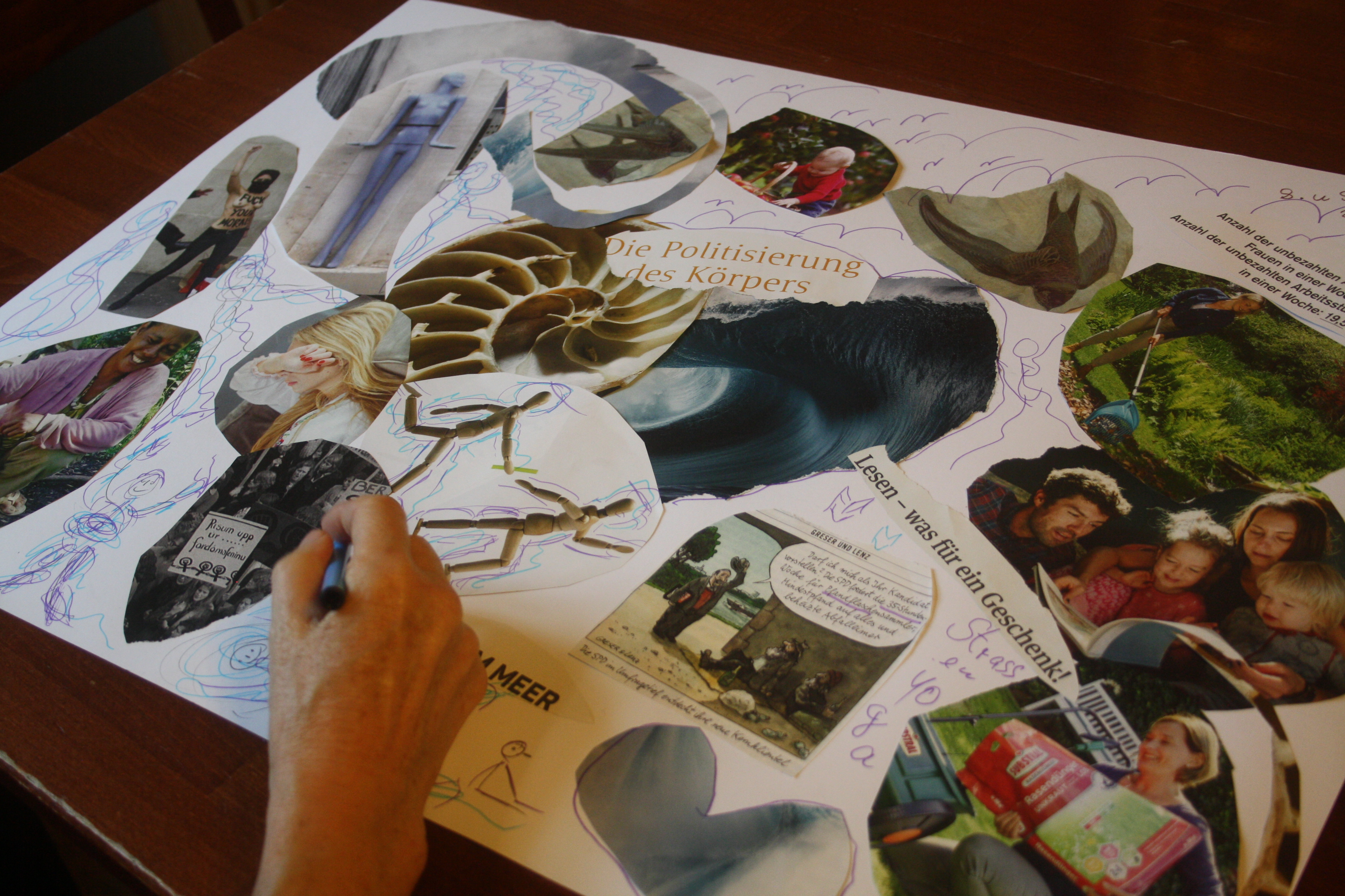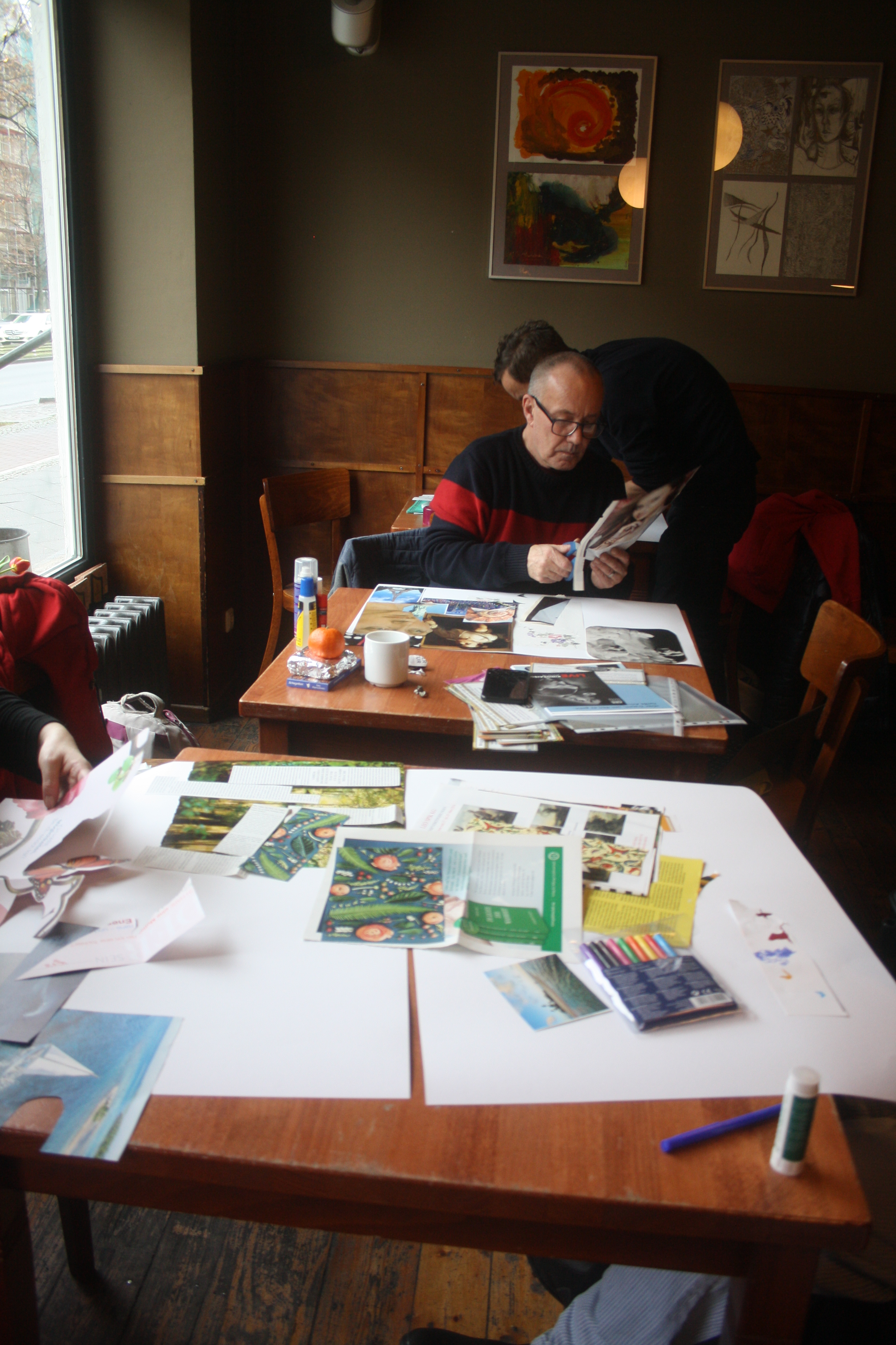 Dann kam die Kreativität ins Spiel! Denn diese Gedanken und Ideen sollten anschließend in ein Visionboard fließen, welches jeder Teilnehmer oder Teilnehmerin mit nach Hause nehmen und dort als Gedankenstütze nutzen kann. Eifrig wurde im Material gebuddelt, ausgeschnitten und arrangiert und so begannen sich wunderbare Collagen zu entwickeln, in denen man sich als Betrachter geradzu verlieren kann. Aufgrund der Arbeitsfreude und Detailgenauigkeit wurden wir zwar nicht am zweiten Tag fertig, aber es wurde einfach kurzerhand ein dritter Tag ausgemacht (15.01.2020), um die Werke in Ruhe fertig zu stellen. Denn in der Ruhe liegt die Kraft!