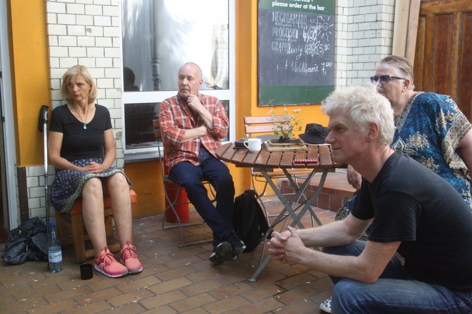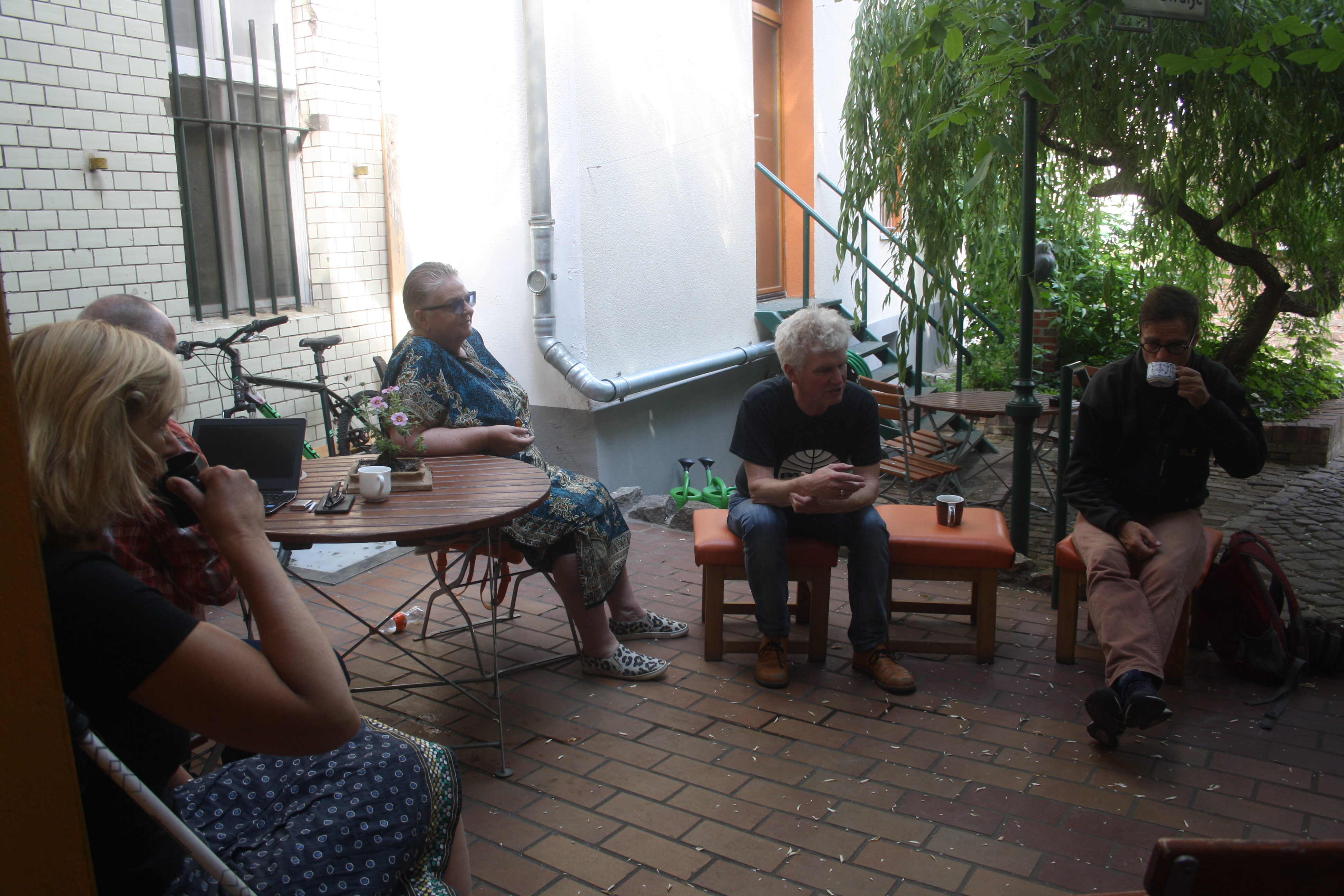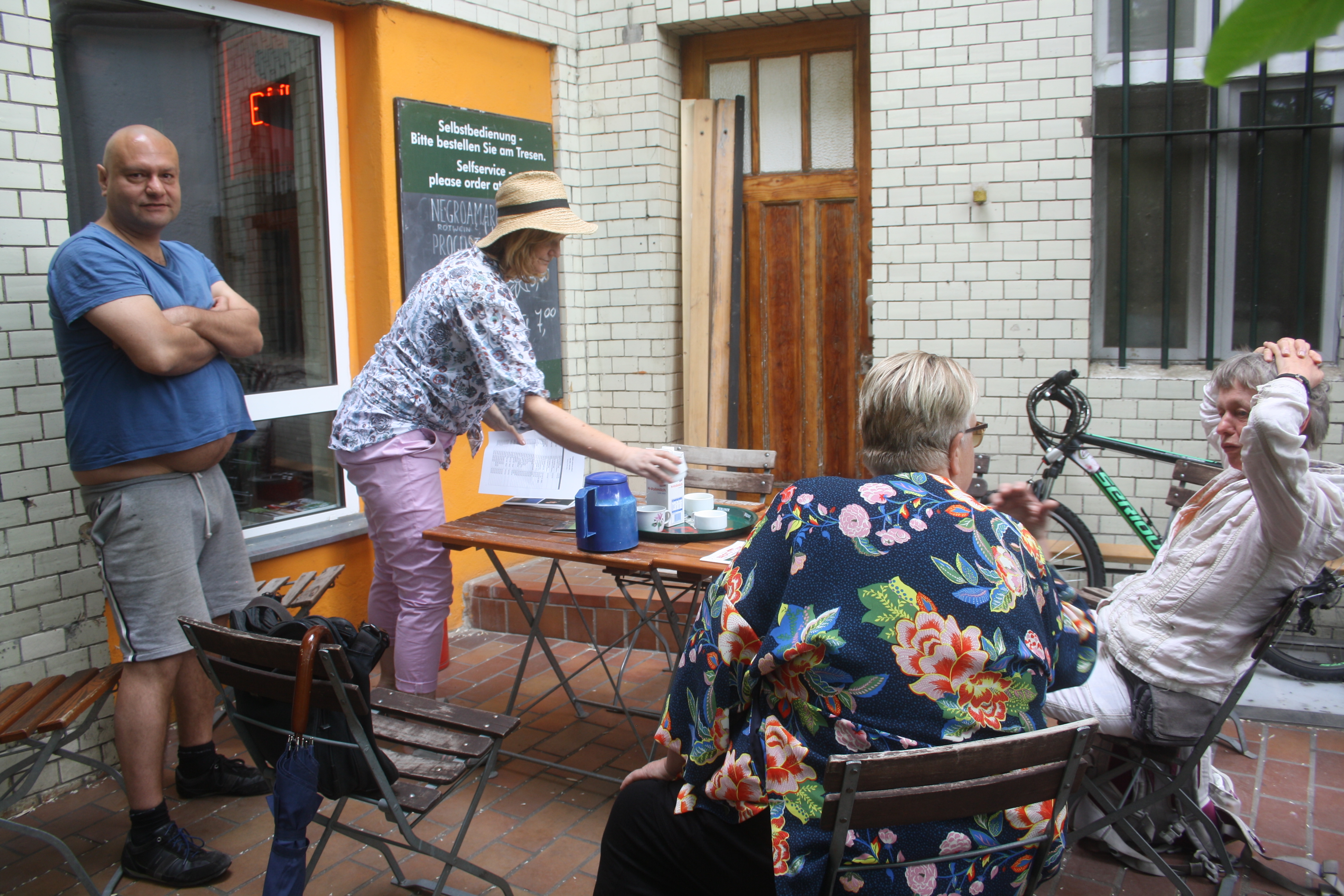 Echt beachtlich wie sich gestern alle Teilnehmer*innen mit Jörg Fügmann durch die krummen Flure, verwinkelten Ecken und schmalen Räume der Brotfabrik bewegten. Sich dabei noch auf die Geschichte der einzelenen Bereiche zu konzentrieren und Fragen zu stellen, ist wirklich nicht so leicht. Gut, dass der abschließende Raum das Kino war, da konnte man dann entspannt sitzen und sich den Plan für die nächste Woche anhören: Wie können wir unser Jahres Event planen? Was ist mit den Regelungen zu beachten? Was können wir anbieten? Wer wird wie wo wann auf welche Art was machen können?