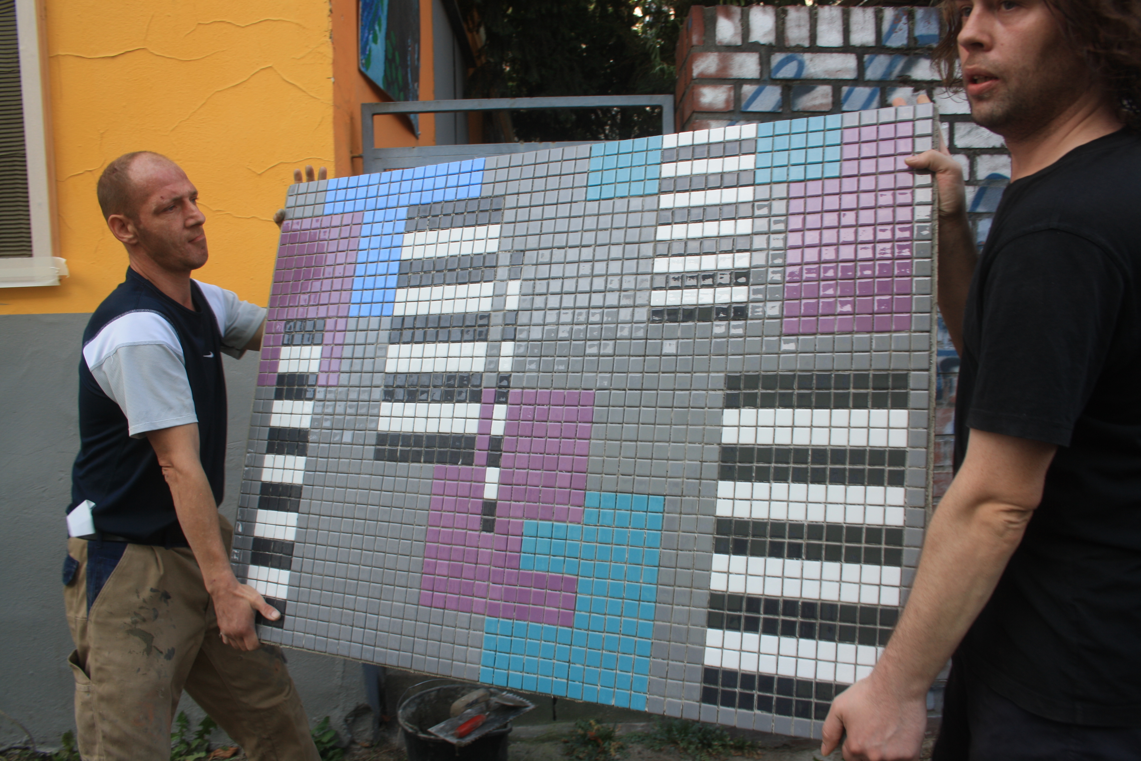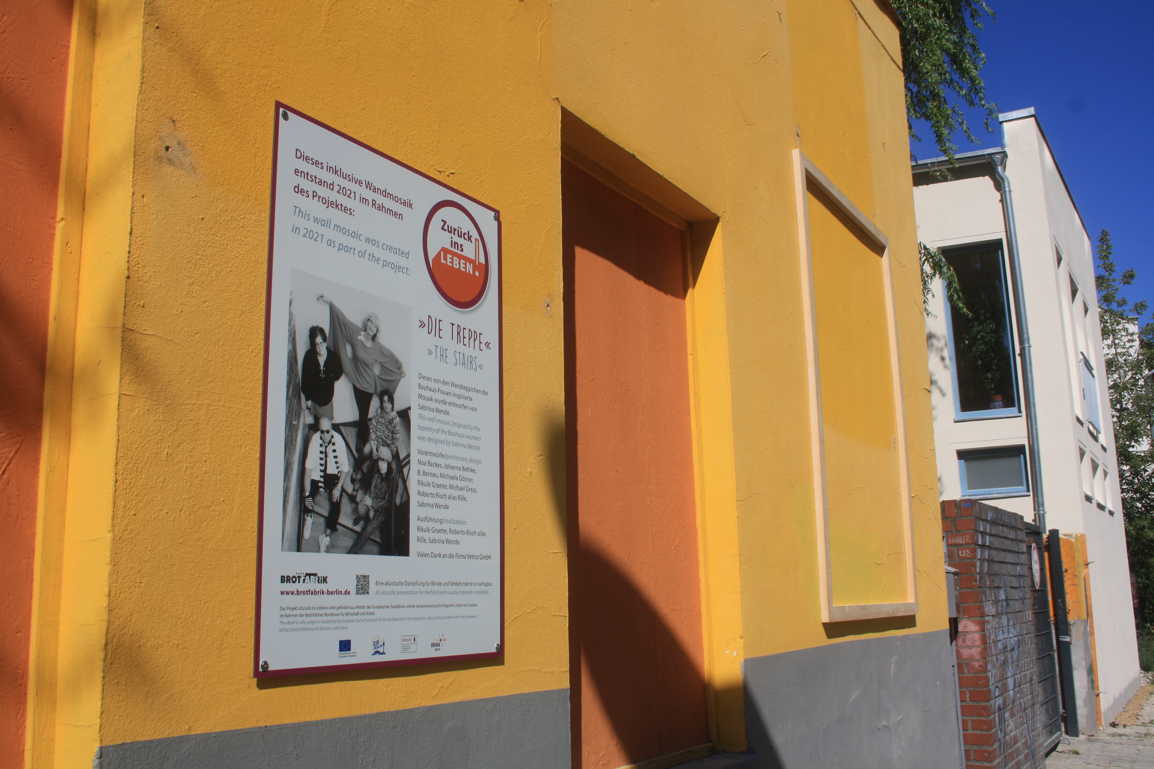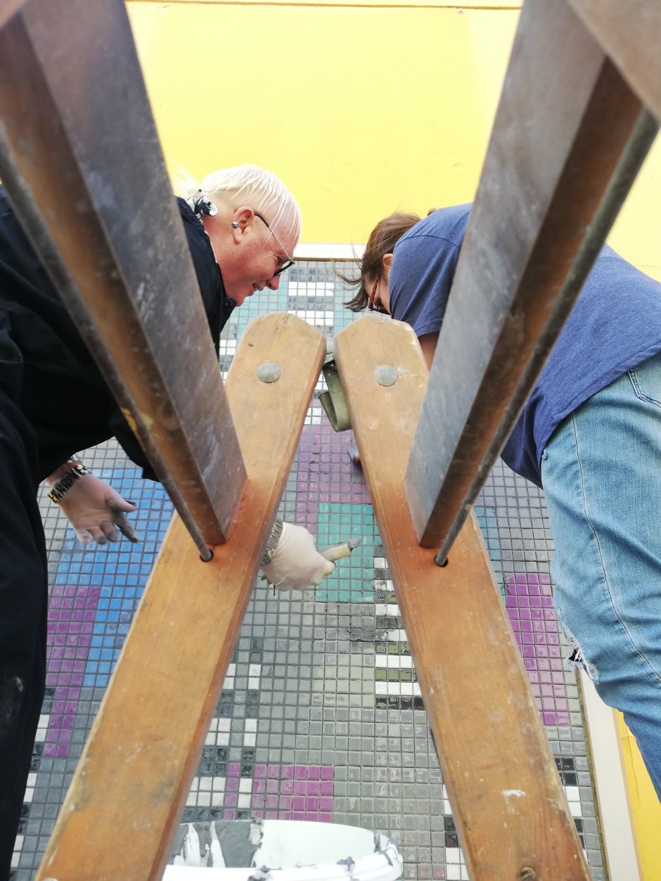 Es hängt! Es hängt und sieht toll aus! Es hängt, sieht toll aus und hat gestern wirklich schöne Aufmerksamkeit in Form einer Enthüllungsfeier, neugierigen Zuschauern und einer tollen Rede von Petra Schröck bekommen. Endlich ist die Wand an der Heinersdorfer Str. vollständig mit den Mosaiken bestückt und kann alle Vorbeikommenden erfreuen. Danke an alle, die sie betrachten, an alle, die mitgeholfen haben, dass es enstehen und werden kann und danke an alle, die uns dabei unterstützen!
