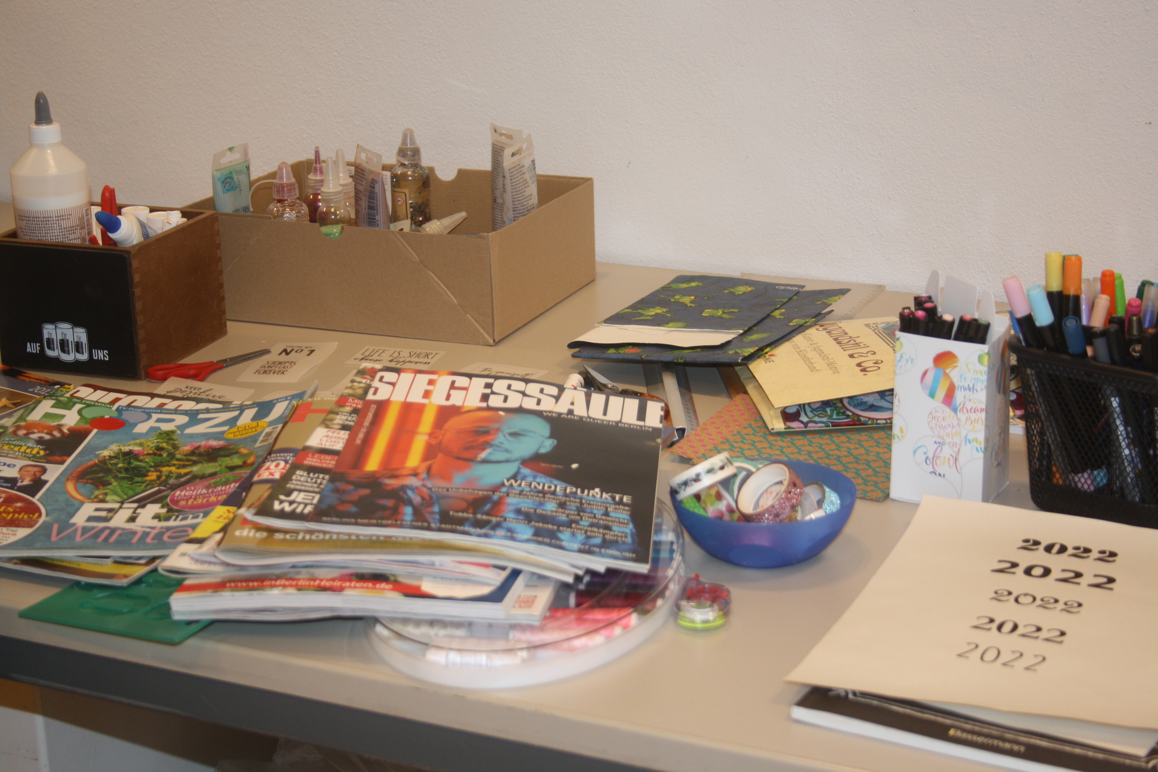 Da glaubt man doch nicht mehr an Zufälle! Heute, an seinem 110. Geburtstag, machen wir das letzte Actionpainting das Projektes. Und irgendwie war er auch mit im Raum, während drei, jeweils sehr eigene und einnehmende, Werke im Malstil á la Pollock entstanden. Drauf los und ohne sich Gedanken zu machen zu malen, ist wirklich nicht so einfach wie man denkt. Aber die Bilder zeigen, dass, wenn man sowohl Farbe als auch Gedanken fließen lässt, etwas wirklich schönes entstehen kann!